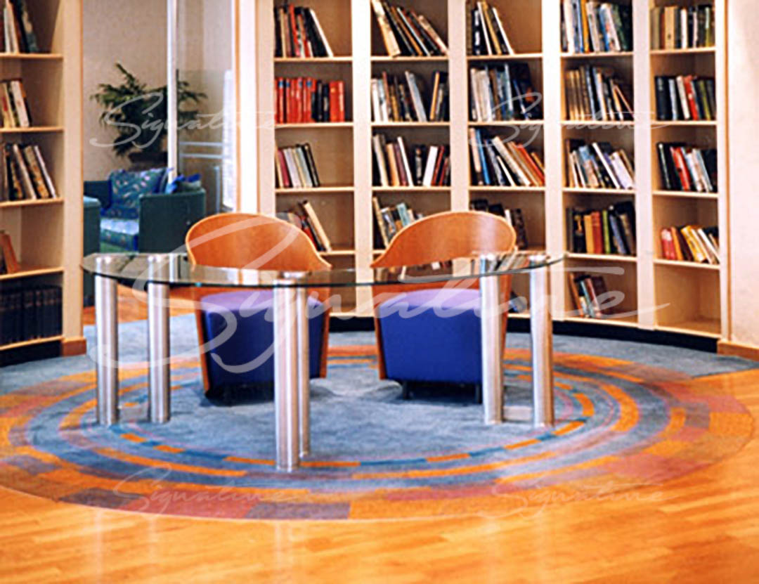 • Flat level cut-pile multi-coloured ring design